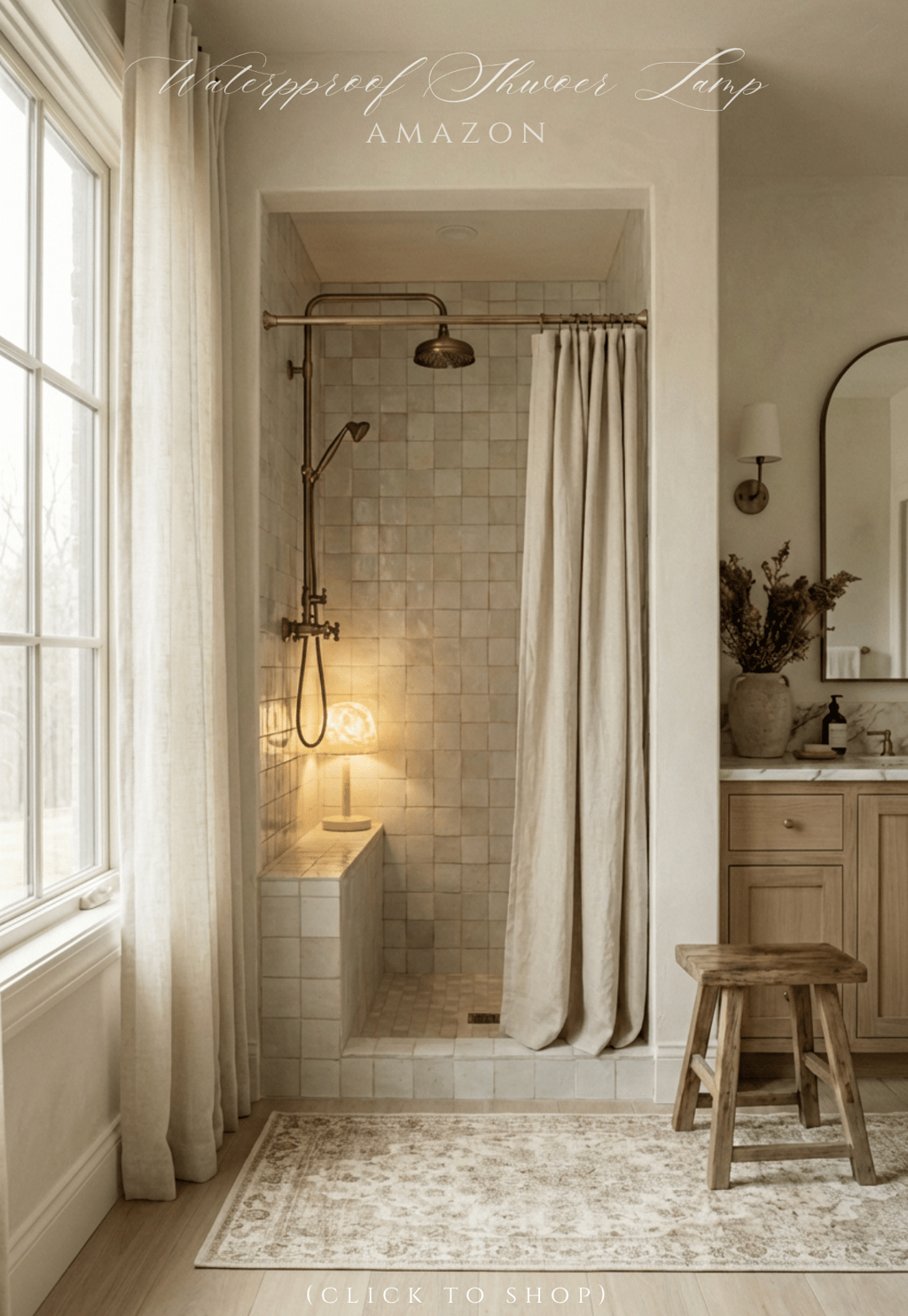 Elevate your daily routine with this genius Amazon find! This waterproof cordless lamp is the perfect way to add warm, moody lighting to your shower or bathtub. I love how it leans into that European farmhouse and wabi-sabi aesthetic, making the bathroom feel like a high-end spa. It’s such an easy way to achieve a warm minimalist look without a full renovation. Perfect for late-night baths or adding a soft glow to your morning.