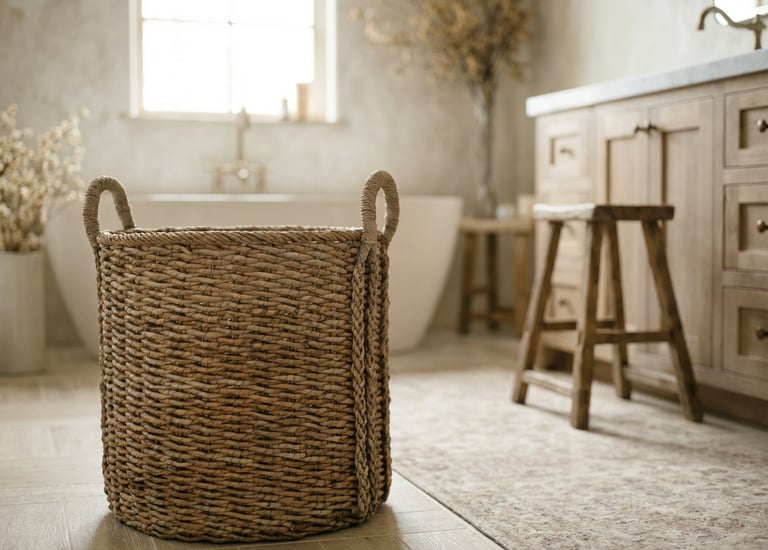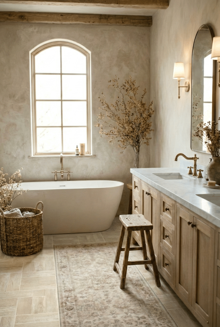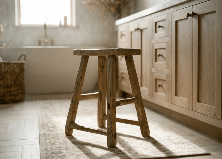 Every organic modern bathroom needs a touch of an antique feel and texture. This Amazon distressed wooden stool is the perfect way to anchor the space. In a world of sleek surfaces and marble countertops, a piece of reclaimed-style furniture adds the necessary "wabi-sabi" element that makes a room feel like a home.